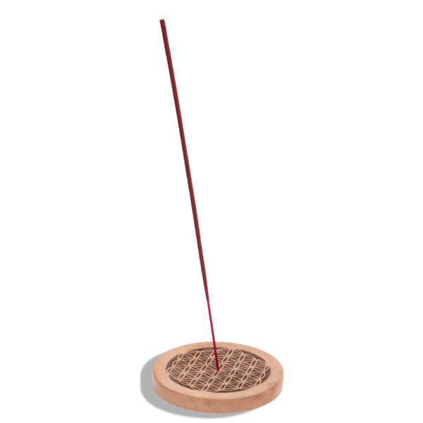 Support d'encens en bois "Fleur de vie" & pochettes bâtons d'encens